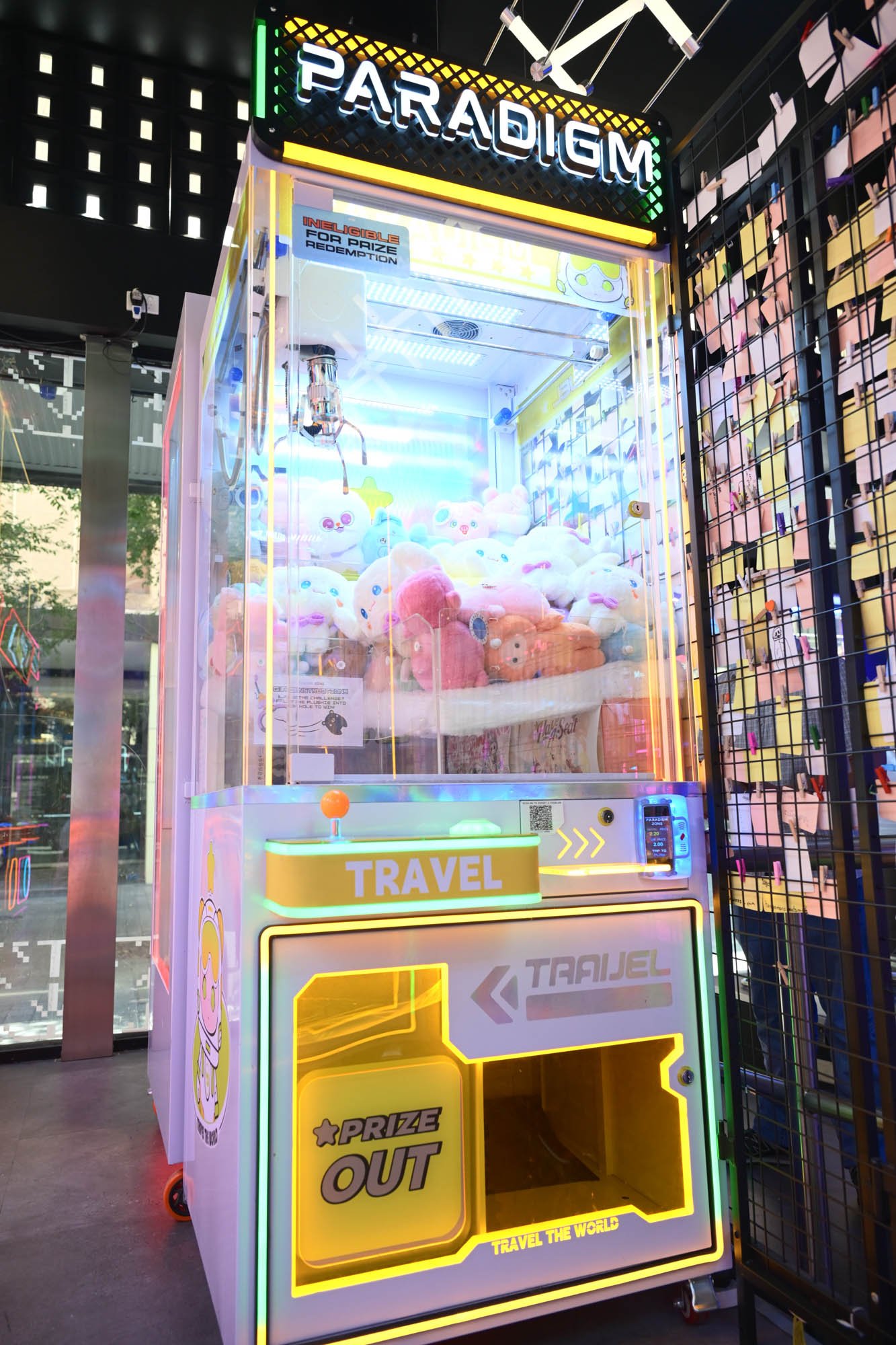 8-inch plushies can be stacked and exchanged for bigger prizes. The display shelves show what’s available and exactly how many wins each prize takes, so you always know what you’re working toward